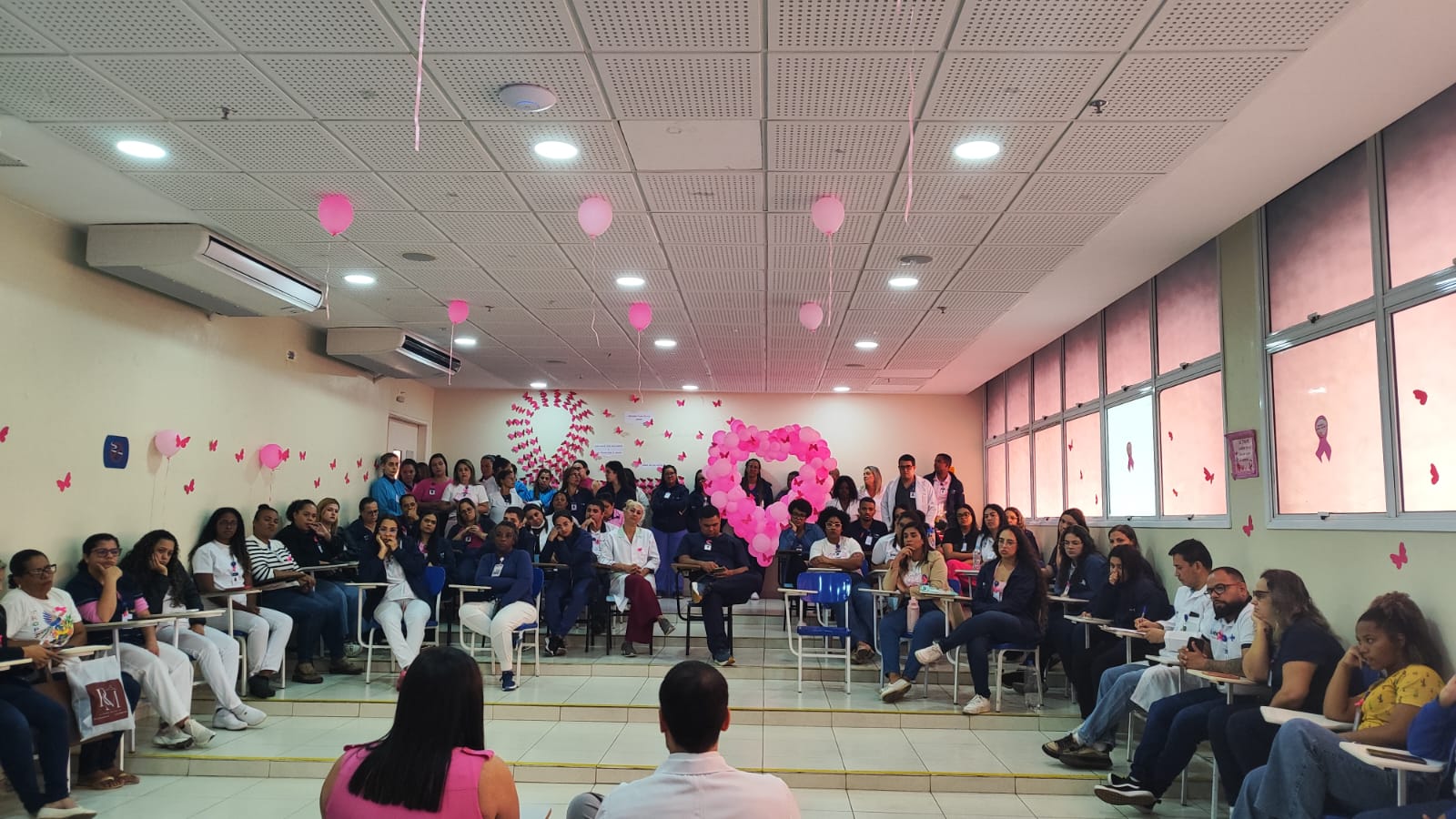 Roda de conversa sobre o Outubro Rosa, destacando a importância da detecção precoce e do acompanhamento regular da saúde da mulher;