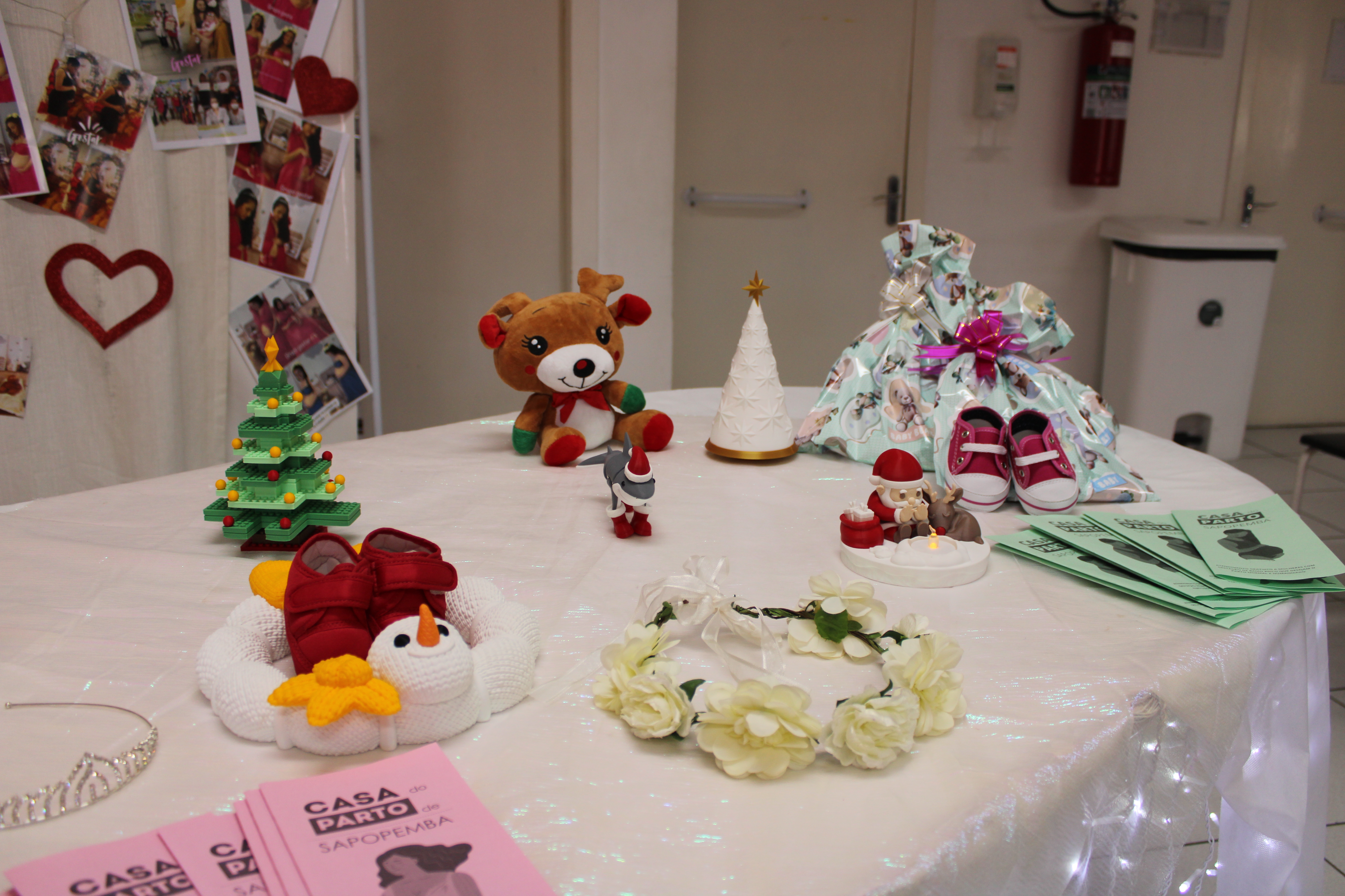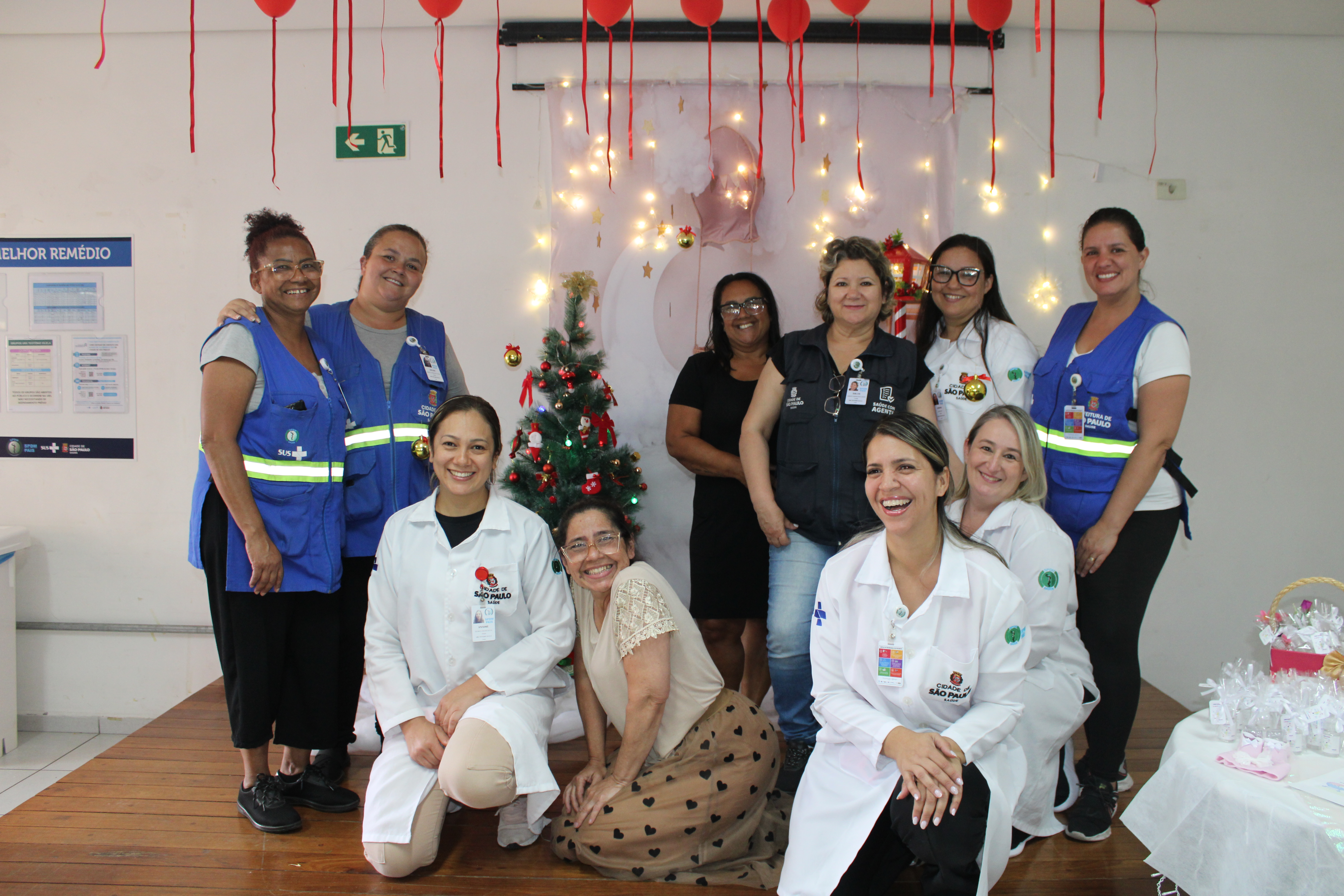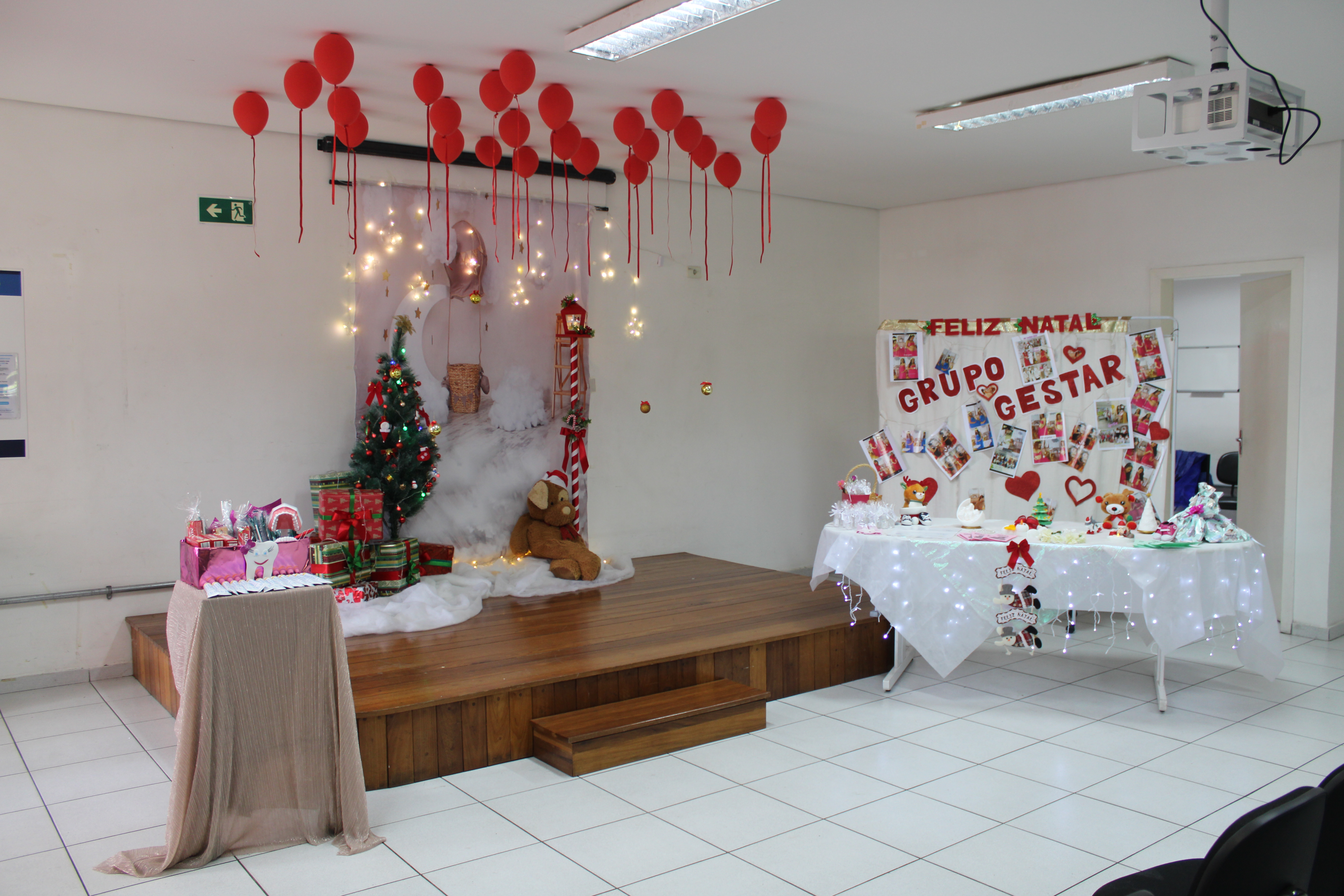 Então, foram feitos os registros fotográficos em um cenário temático natalino, montado pela equipe para o registro desse momento e fechamento de ciclo.