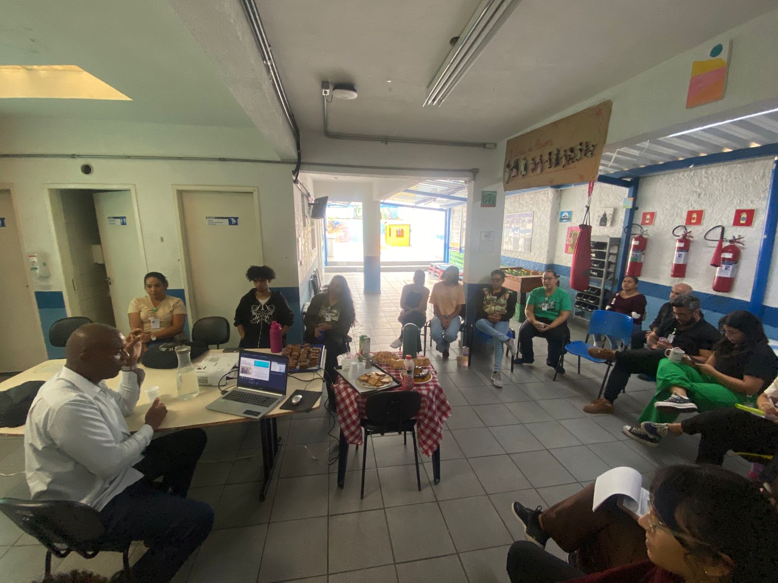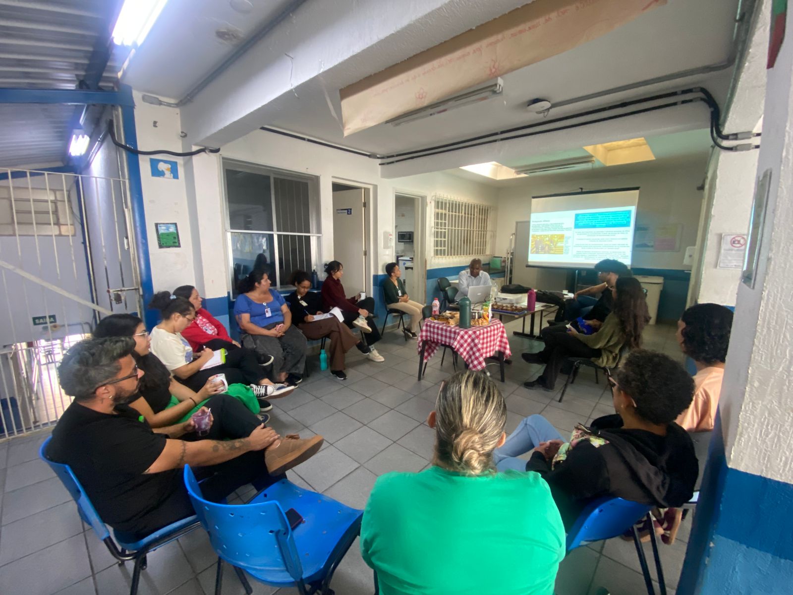 Durante o encontro, foi apresentada a atuação do CRPIR na promoção da igualdade racial, seguida pela discussão de conceitos centrais como racismo estrutural e institucional, letramento racial e seus impactos diretos nas práticas em saúde. A equipe refletiu sobre os efeitos do racismo no desenvolvimento psíquico de crianças e adolescentes, além de debater a racialização dos processos de sofrimento psíquico, das violências vivenciadas e das barreiras de acesso aos serviços de saúde.
