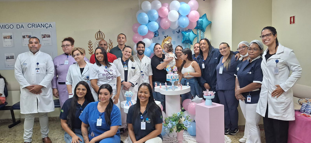 Durante os quase dois meses de internação, a bebê contou com o suporte de uma equipe multiprofissional, incluindo neurocirurgiões, intensivistas pediátricos, técnicos de enfermagem, enfermeiros e fisioterapeutas, além dos serviços de nutrição, assistência social e psicologia e todo suporte das áreas administrativas e de apoio.