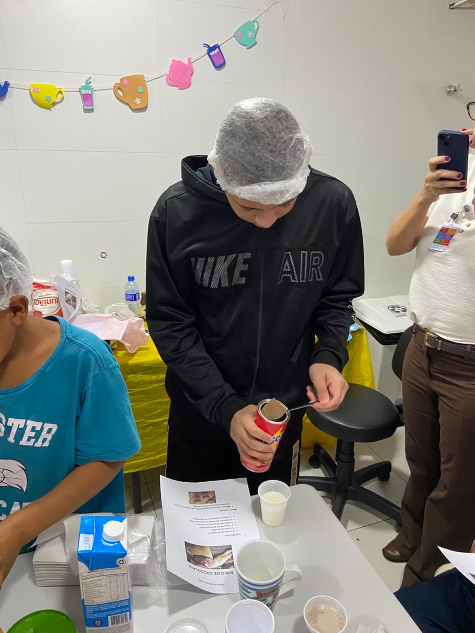 O grupo teve como atividade o preparo de um bolo de caneca no micro-ondas. Mais do que executar uma receita, os adolescentes participaram de uma experiência terapêutica e educativa direcionada ao desenvolvimento de habilidades funcionais e sociais.
