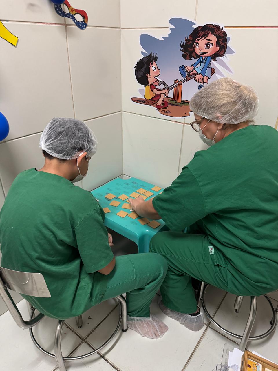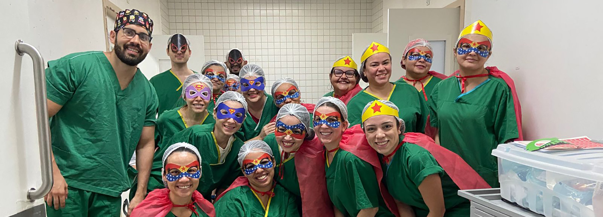 Para tornar o momento mais leve e acolhedor, cada criança recebeu um kit temático de super-herói, com capa, máscara, jogo da memória e itens de proteção individual (gorro, máscara e propé). Os profissionais do centro cirúrgico também aderiram à iniciativa, realizando os procedimentos fantasiados de super-heróis, em uma ação que emocionou pacientes e familiares.