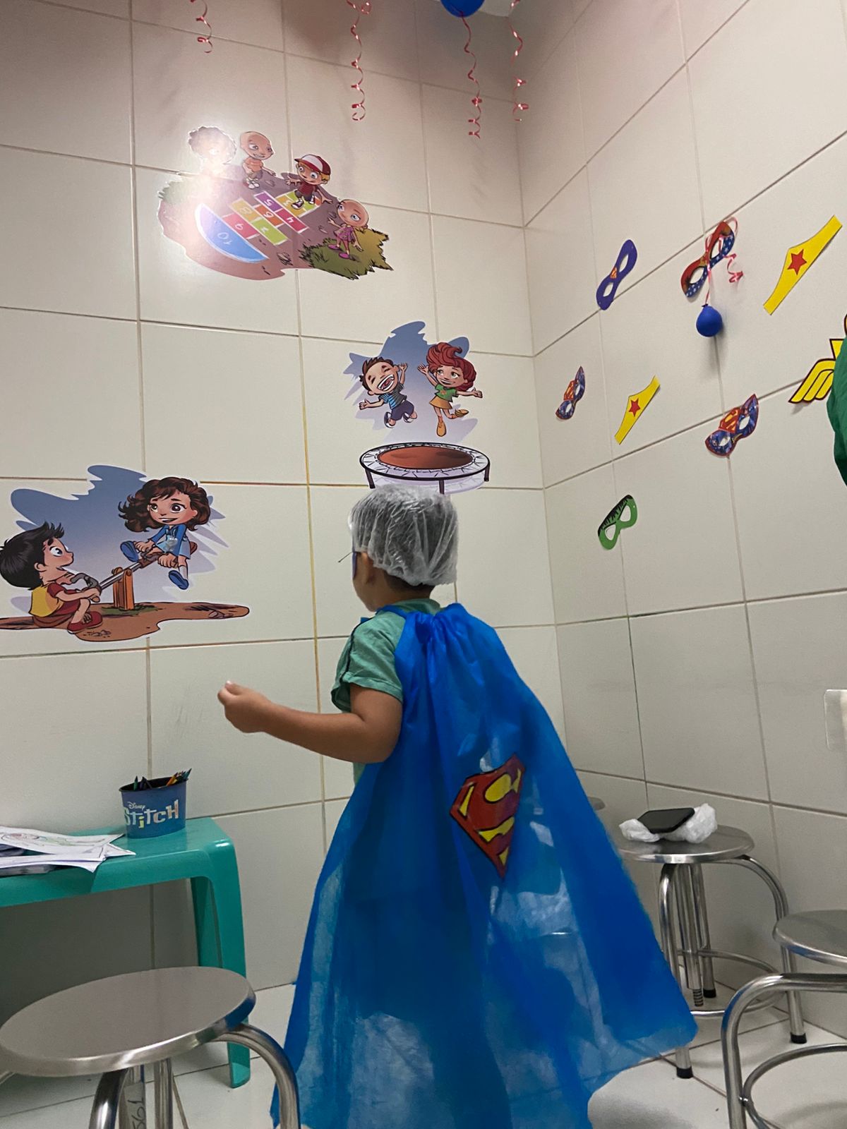 Além do figurino em si, foram realizadas atividades lúdicas inspiradas no universo dos heróis, proporcionando momentos de brincadeira e descontração antes da cirurgia.
