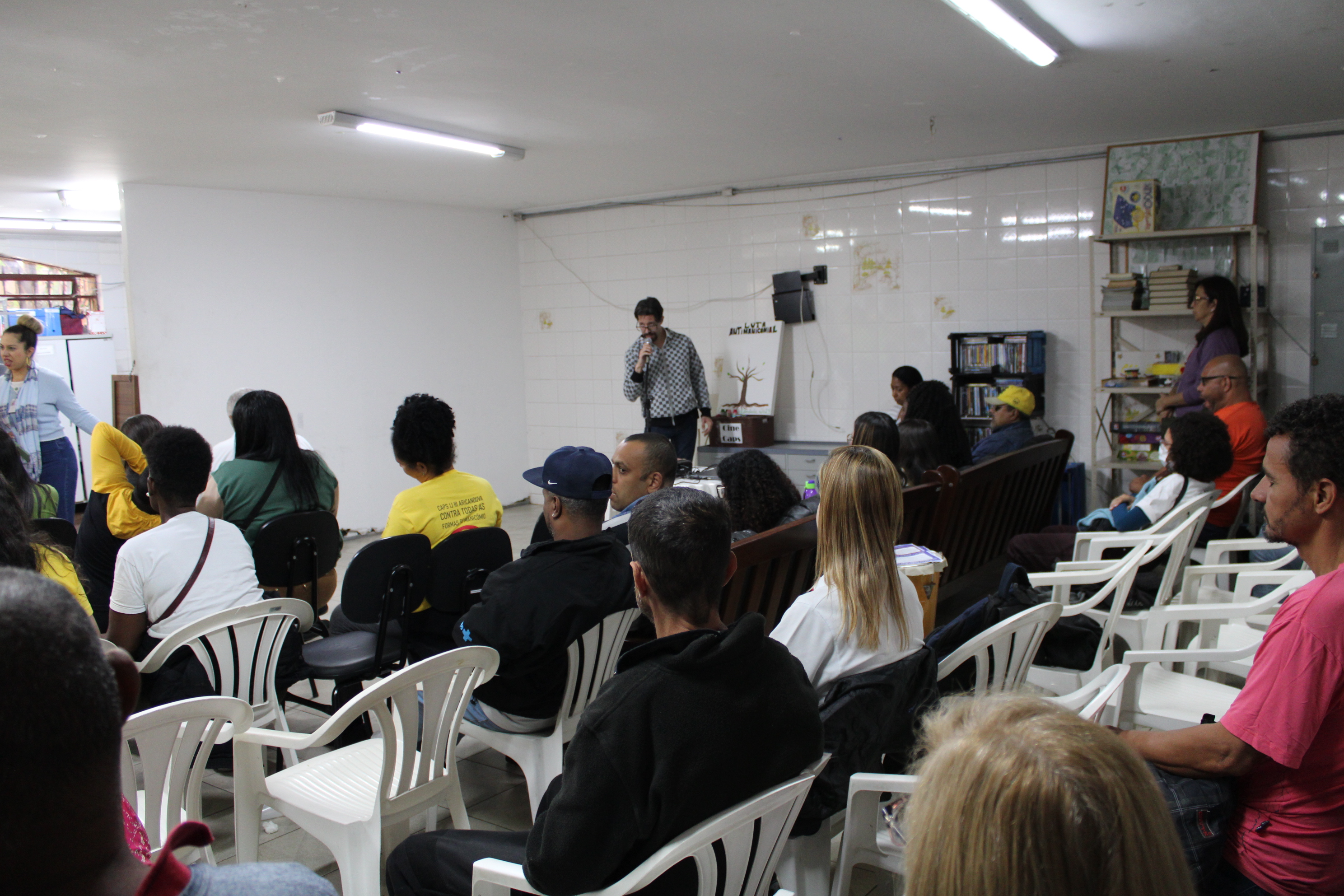 Ao chegar ao serviço, foi exibido um vídeo explicando a origem do movimento antimanicomial e o microfone foi aberto para quem quisesse compartilhar sua história de vida e a importância do CAPS em sua vida.