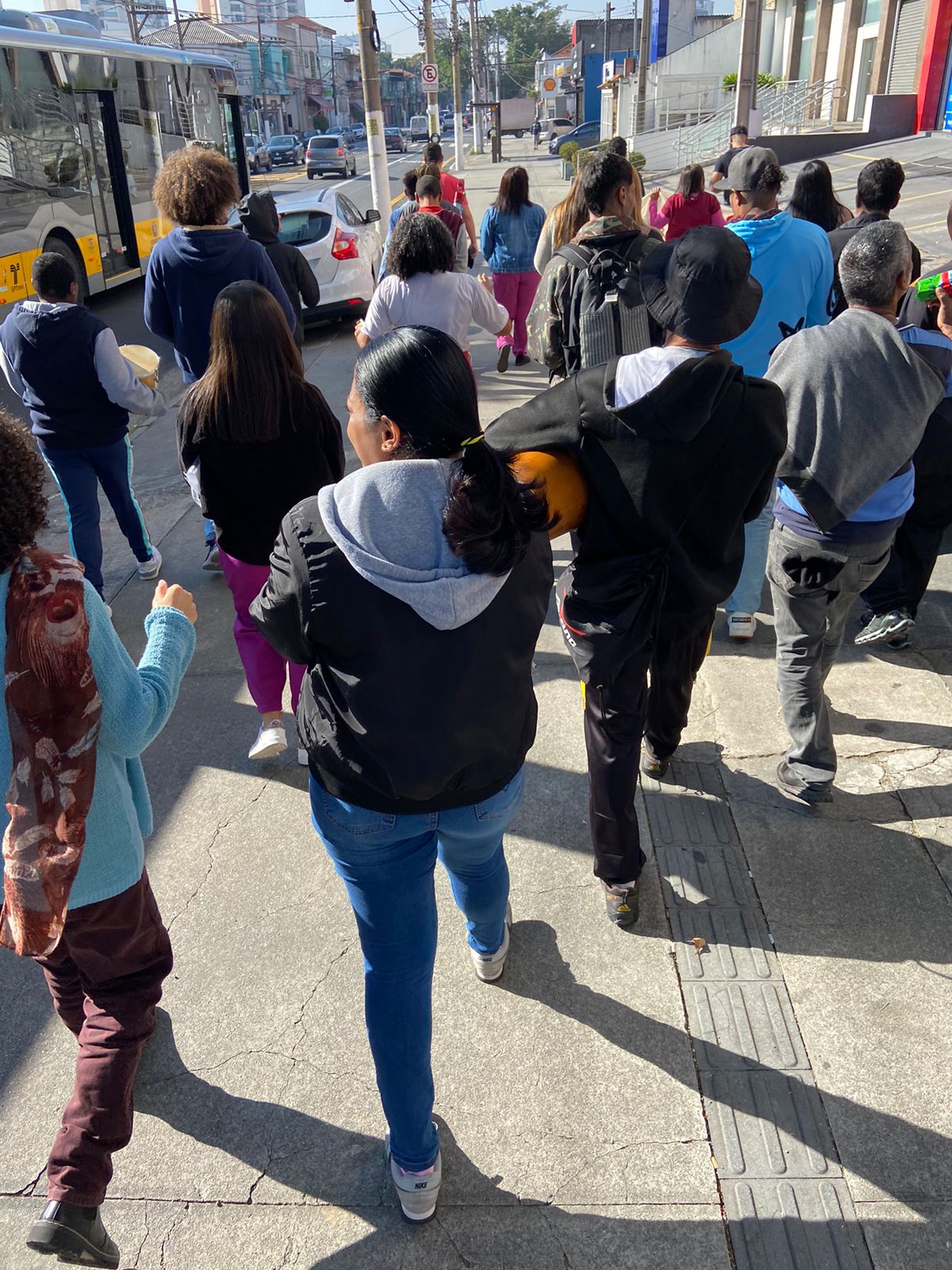 Durante a andança, os participantes davam gritos de guerra em defesa da Luta e carregavam uma faixa com frases motivacionais escritas por frequentadores e funcionários.