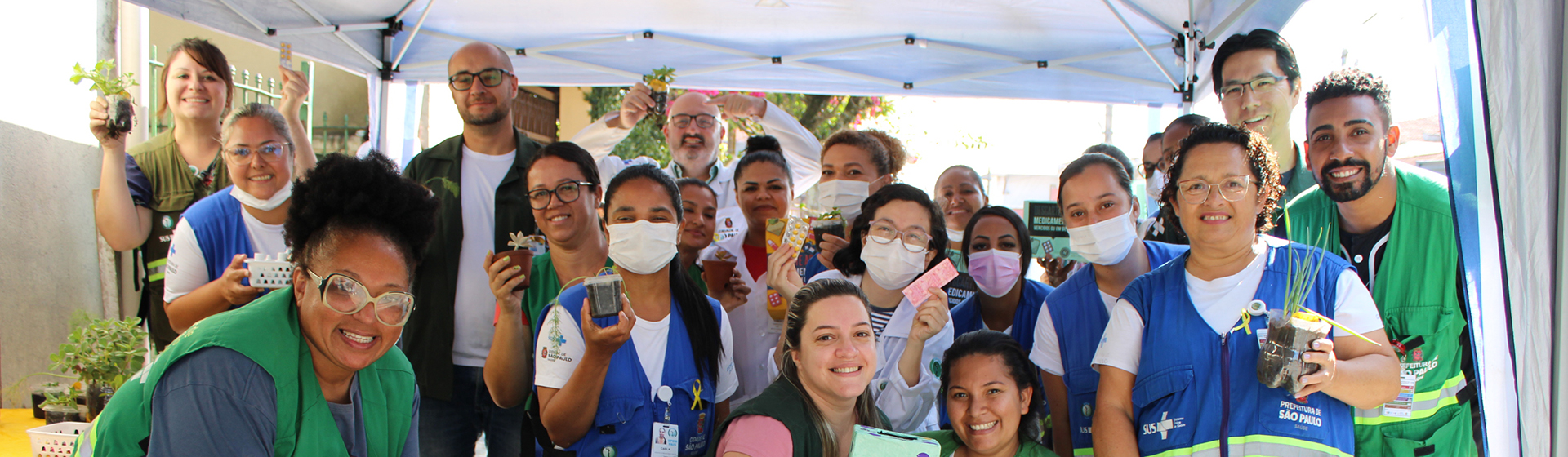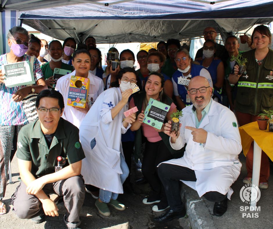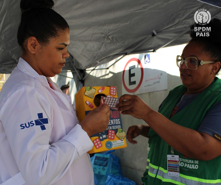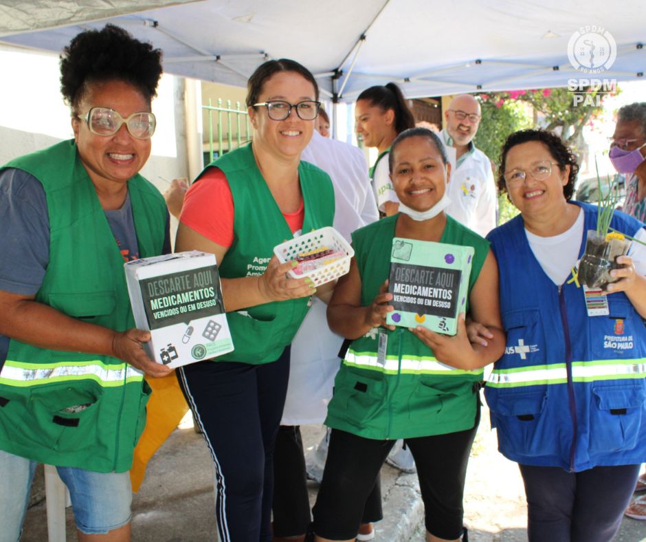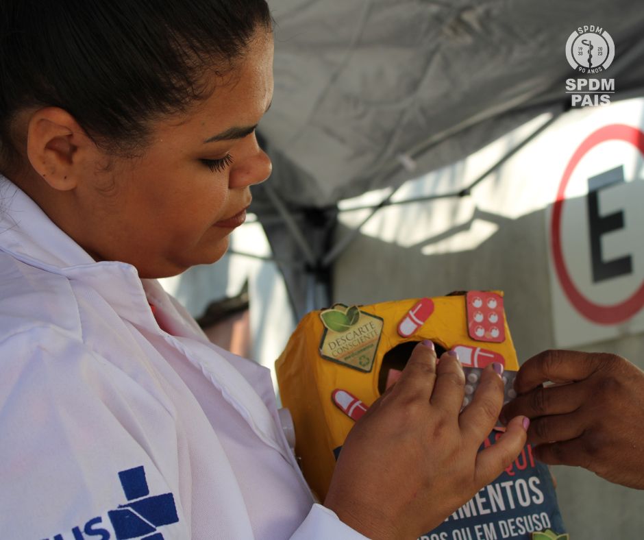 Os profissionais também saíram às ruas aos arredores da Unidade, informando as pessoas sobre a importância de recolher embalagens de medicamentos, remédios vencidos, vidros de xaropes, pomadas, conta gotas, blister, entre outros, reforçando que todas as UBS realizam o descarte correto desses resíduos especiais.